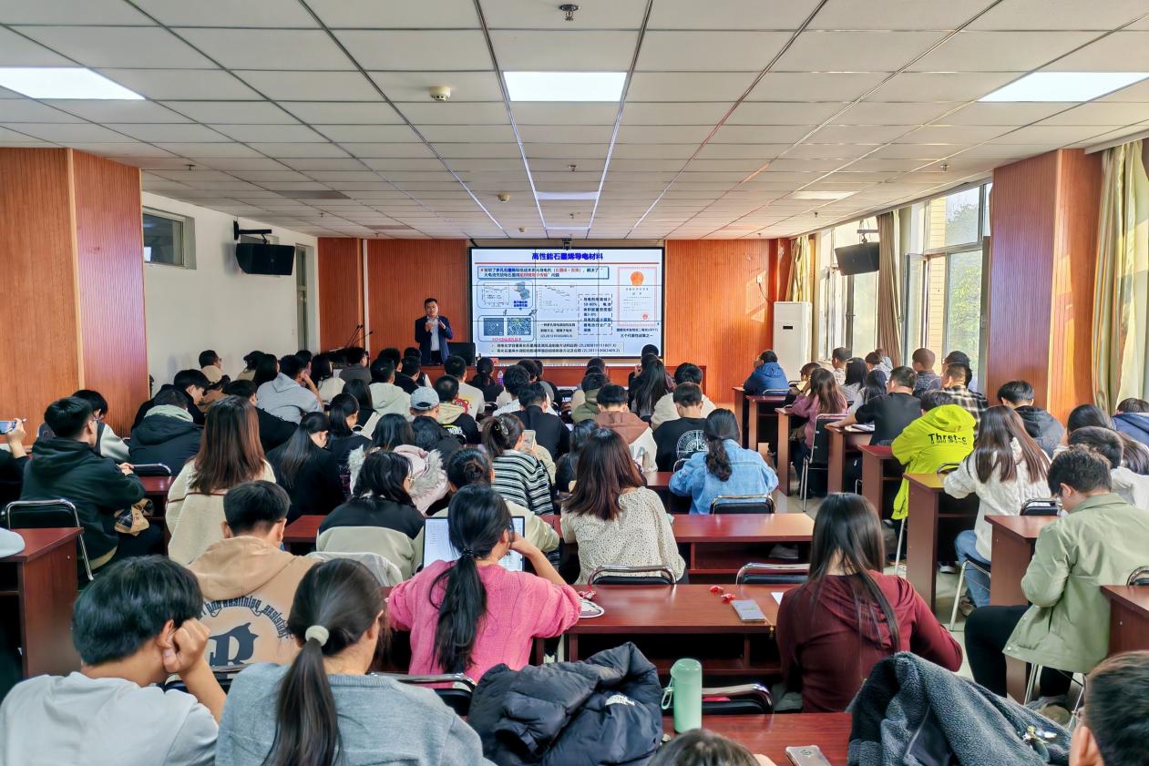 贺艳兵教授以《固态电池离子输运通量提升策略》为题,与学院师生进行了深入的学术交流。报告中,贺教授从构建固态电池体系高效“界面耦合、界面传锂、界面反应”出发,提出了高通量高稳定离子输运网络系列构建策略。他介绍了目前主要的三个研究重点,首先是提出了固态电池原位界面反应固态化的方法,实现了固态电解质和电极良好的界面耦合;其次,提出了介电陶瓷材料晶格适配耦合新策略,通过同步激发锂盐解离并实现离子高效输运,实现了无机/有机固态电解质界面的高效传输。最后,创建了固态正极弹性离子输运网络和高稳定界面,实现了固态正极高反应活性,建立了室温长寿命固态电池普适构建方法。互动交流环节,贺艳兵教授针对现场师生的问题进行了详细解答与深入探讨。