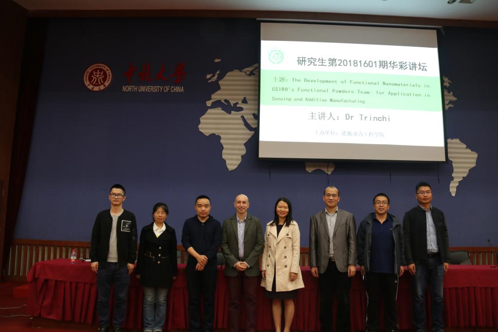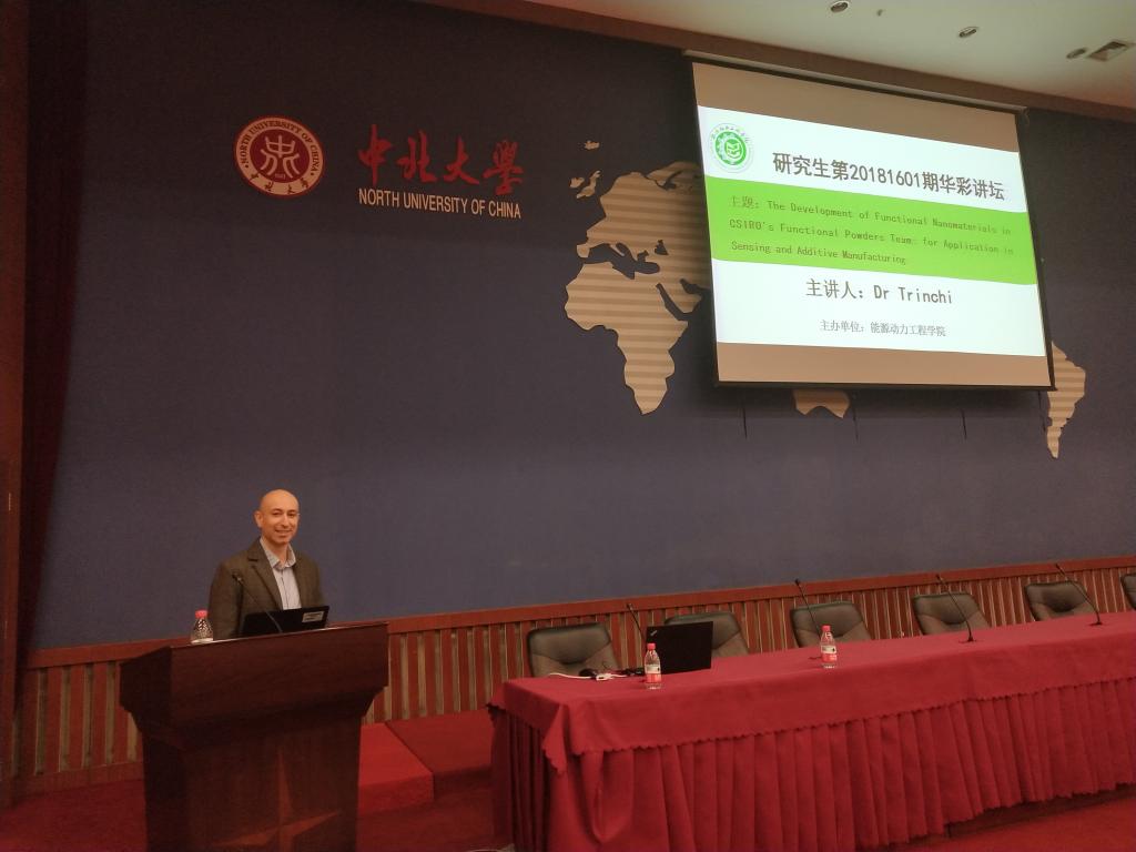 2018年4月25日上午10:10,由能源动力工程学院承办的中北大学研究生华彩讲坛第20181601期---“Functional Nanomaterials for Sensors and Coatings at CSIRO – Australia’s National Research Organization”在图书馆5层学术报告厅顺利举行。