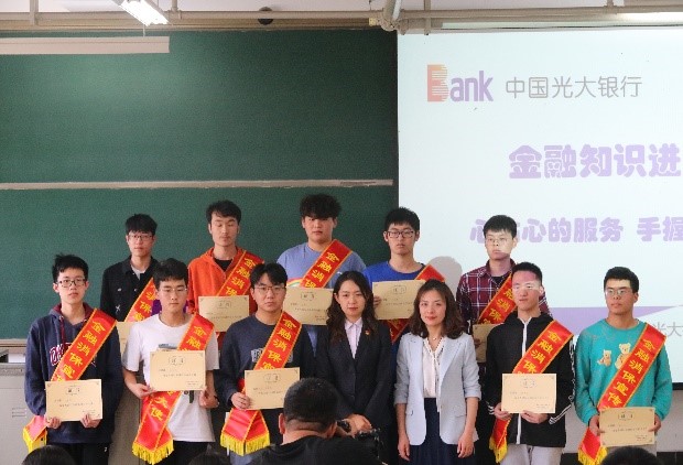 伴随着庄严肃穆的国歌奏唱,讲座正式拉开了帷幕。首先,中国光大银行解放南路支行大堂经理霍文婷以《金融知识进校园,争做金融好网民》为题进行讲座。她为同学们科普了金融消费者的概念,用轻松有趣的小视频让同学们认识到个人信息的重要性,并提醒同学们要养成理性消费观念,远离校园贷,积极合法地保护自己的消费者权益。值此五四青年节到来之际,光大银行太原分行还聘请了10位优秀的学生担任首批校园金融消保宣传大使,在学生中传播金融知识,为学生解决实际困难。