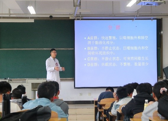 最后,校医院赵海滨医生针对新冠肺炎、肺结核等传染病进行了详细的讲解,强调了新冠疫苗接种注意事项和接种禁忌症。通过讲解,同学们充分认识到高校疫情防控的重要性,实现群体免疫迫在眉睫。同学们还完成了有关结核病健康知识的调查问卷,学习了有关结核病的基础知识及预防手段,对传染性疾病的应对措施有了更加深刻的认识。