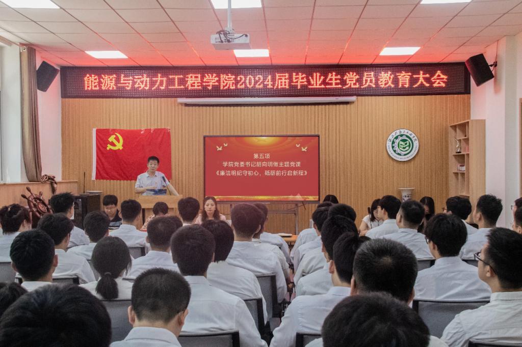 为进一步增强毕业生党员理想信念,强化毕业生党员的纪律意识和党性修养,2024年6月14日上午,能源与动力工程学院2024届毕业生党员教育大会于院楼115会议室举行。院党委书记胡向明、研究生党支部书记祁亚萍、本科生第一党支部书记李晓彧、本科生第二党支部书记李涛、辅导员董雅倩、组织员罗艳红及2024届全体毕业生党员共同参加了本次活动。会议由院党委副书记兼副院长任雁主持。