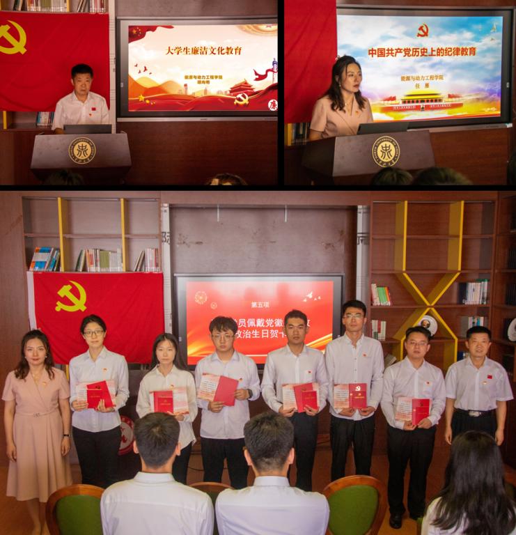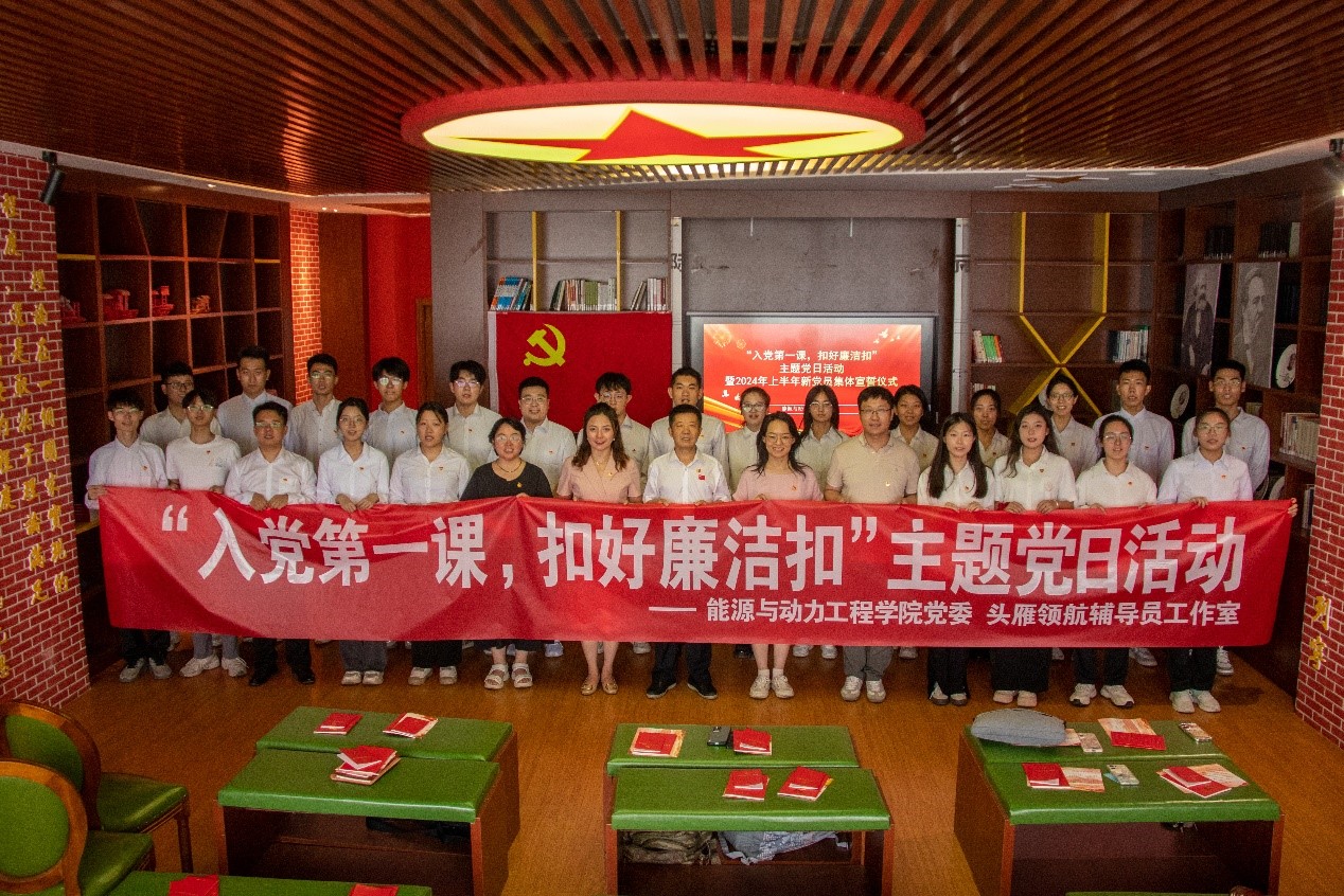 为庆祝建党103周年、喜迎建国75周年,进一步增强大学生党员的廉洁自律意识,上好入党第一课,能源与动力工程学院党委、头雁领航辅导员工作室于2024年7月1日下午,在校图书馆马克思书屋联合开展“入党第一课,扣好廉洁扣”主题党日活动暨2024年预备党员集体入党宣誓仪式。院党委书记胡向明、各学生党支部书记、本学期新发展的23名预备党员参加了本次主题党日活动,活动由院党委副书记任雁主持。