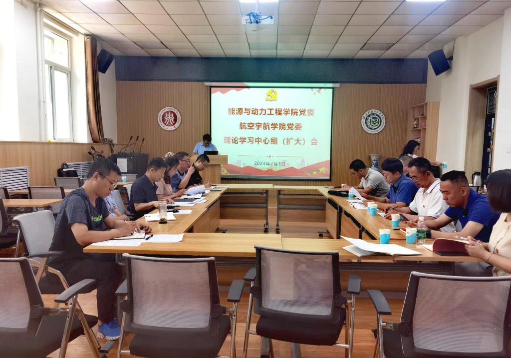 为高质量学习贯彻习近平总书记重要讲话及重要指示精神,贯彻落实“第一议题”制度,扎实推进党纪学习教育,2024年7月1日,航空宇航学院党委和能源与动力工程学院党委在诚学楼115会议室开展理论学习中心组联组共学。会议由航空宇航学院党委书记罗建国同志主持,航空宇航学院党委和能源与动力工程学院党委理论学习中心组全体成员参加学习。