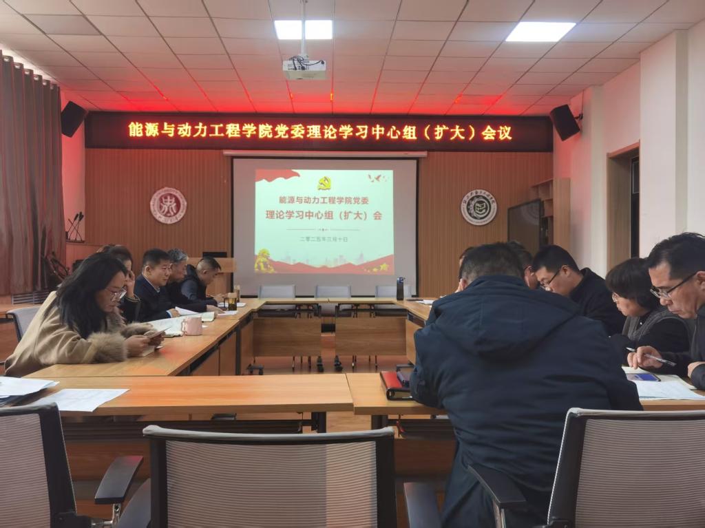 2025年3月10日下午,能源与动力工程学院党委举行理论学习中心组(扩大)会议,深入学习全国两会精神,重点围绕能源领域的发展成就和未来部署展开交流。院党委理论学习中心组全体成员、各党支部书记、各科室科长、各系主任、辅导员及教师代表参加了会议。会议由院党委书记胡向明主持。