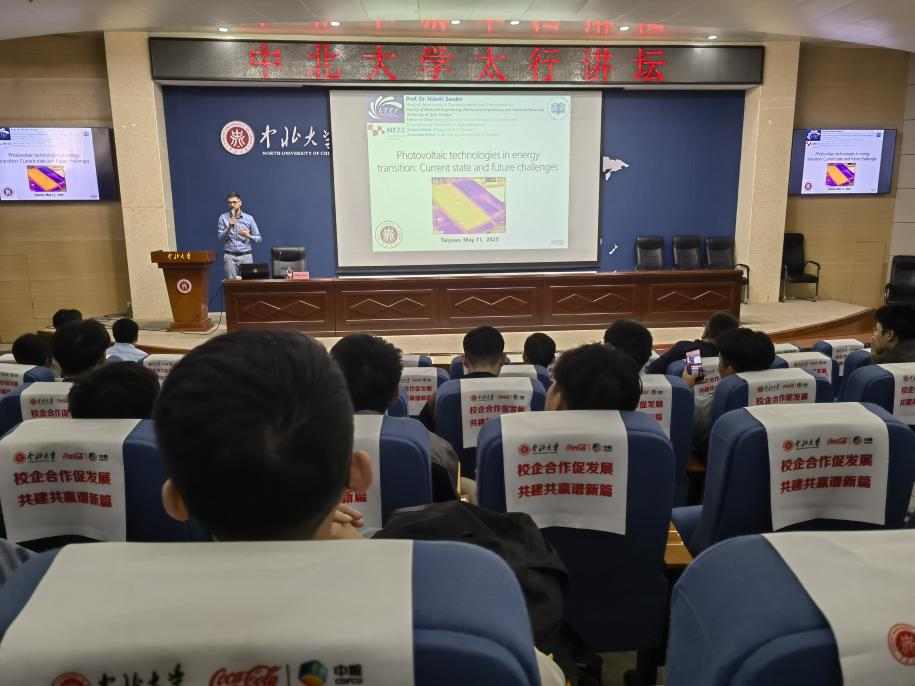 5月11日,由党委宣传部、国内交流合作部、学生工作部联合主办,能源与动力工程学院承办的中北大学太行讲坛在瑾瑜国际会议中心成功举办。此次活动邀请了国际知名能源领域专家、克罗地亚工程院院士Sandro Nizetic教授,围绕“能源转型中的光伏技术:现状与未来挑战”这一主题发表精彩演讲。Sandro Nizetic院士结合山西省能源转型的实际需求,强调能源转型需综合考量经济、技术及社会等多方面因素,并以光伏技术作为核心突破口,深入探讨了技术革新的方向及实践中的挑战。Sandro院士特别强调,山西省应通过技术迭代、基础设施升级以及产业协同发展,实现从传统煤电向可再生能源的跨越式转型,为全球能源变革提供具有借鉴意义的区域性样板。