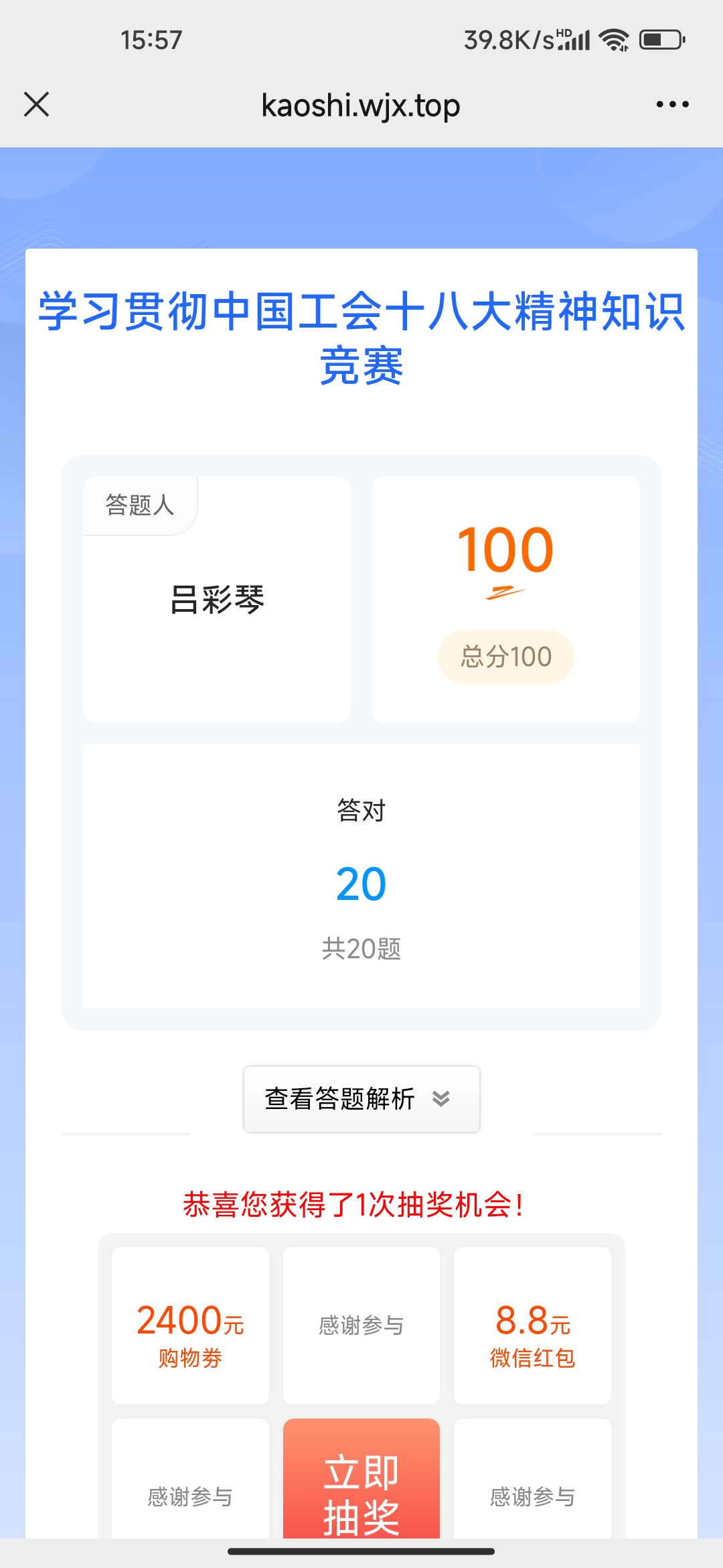 为深入学习宣传贯彻中国工会第十八次全国代表大会精神,将大会要求融入工会工作实践,能源与动力工程学院五月工会活动为学习宣传贯彻中国工会十八大精神线上知识竞赛。全体教职工踊跃参与,跨越空间限制,掀起了一场覆盖广泛、氛围浓厚的学习热潮,充分展现了能动学院教职工勤学善思、积极进取的良好风貌。