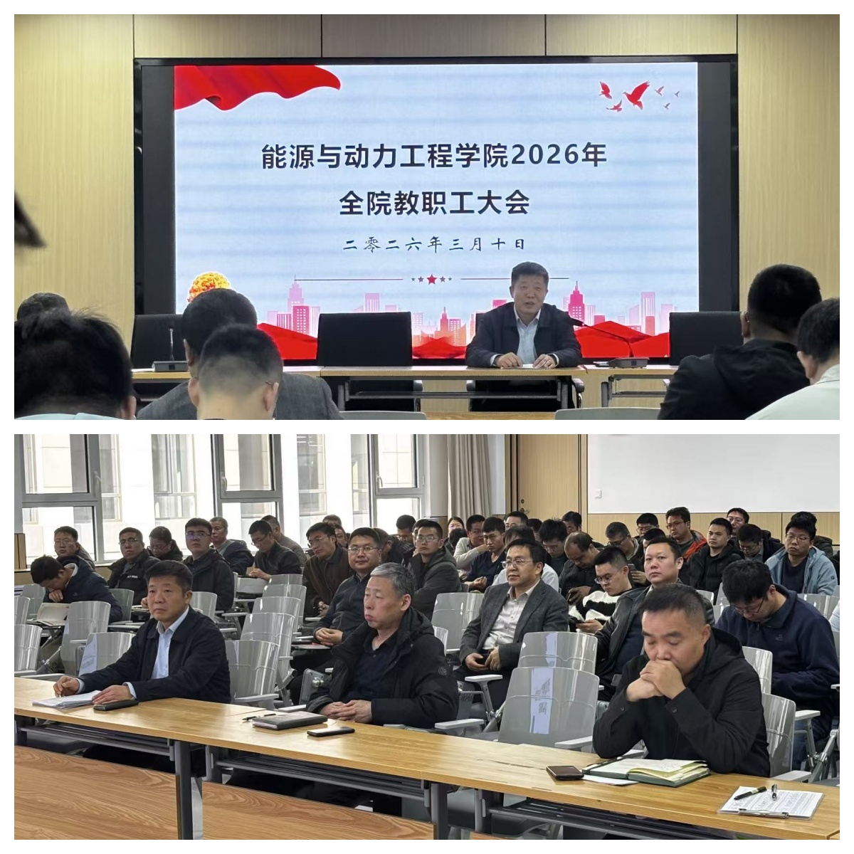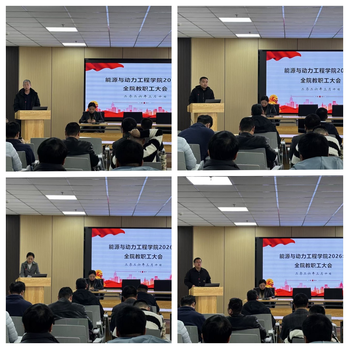 2026年3月10日下午,能源与动力工程学院在能源大楼A202卓越学术报告厅隆重召开春季学期全院教职工大会,全体教职工参会,会议由院党委副书记兼副院长任雁主持。