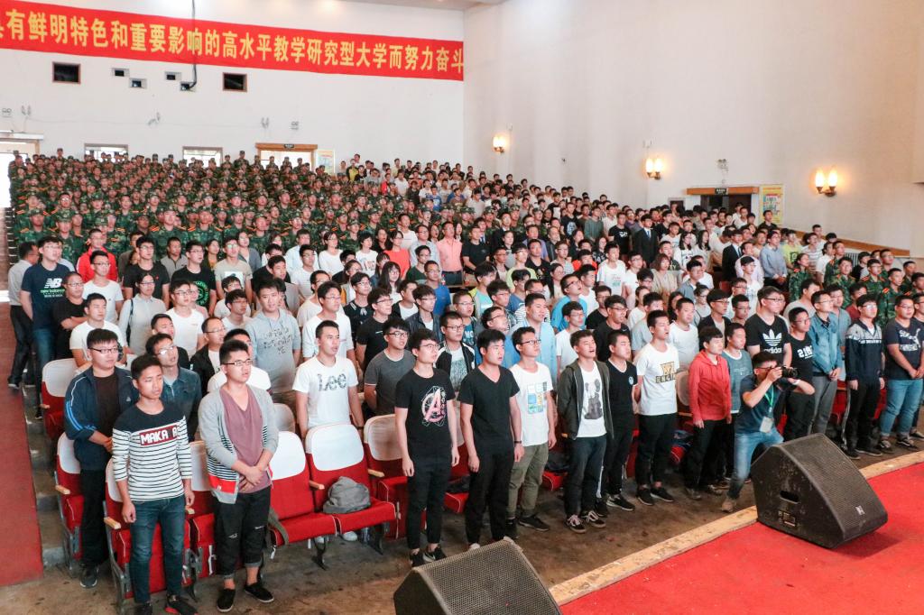 何朝兵总裁表示再次回到母校感到无比的亲切,希望同学们珍惜大学四年的时光,加强体育锻炼,做好科学规划,努力奋斗,为母校的发展贡献自己的力量。校长刘有智教授在带着新生回顾了76年来中北大学薪火相传,雄厚的师资力量,浓郁的文化底蕴和傲人的辉煌成就,并从主动学习、创新发展、包容合作三方面对同学们提出了要求,刘校长表示同学们应该继承中北大学的光荣传统,努力拼搏、敢于担当、共同创造学院的辉煌。
