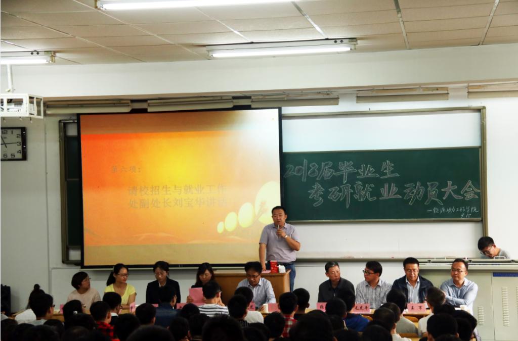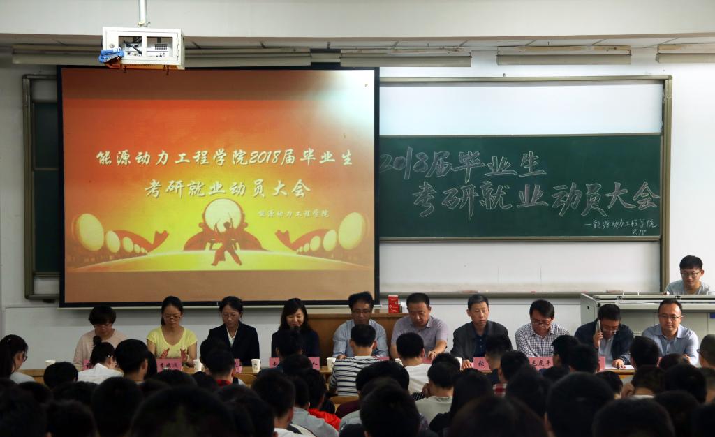 距离2018届毕业生参加研究生入学考试还有100天时间,为鼓舞考研学生士气,也为了让就业学生明确就业目标和努力方向,能源动力工程学院于9月15日上午10点30在08202教室举行能源动力工程学院2018届毕业生考研就业动员大会。出席大会的领导嘉宾有校招生与就业工作处副处长刘宝华,院党委书记李运芝,院副院长张翼,2018届毕业生班主任及各科室负责人,2018届全体研究生、本科生参加了大会。会议由院党委副书记兼副院长赵永娟主持。