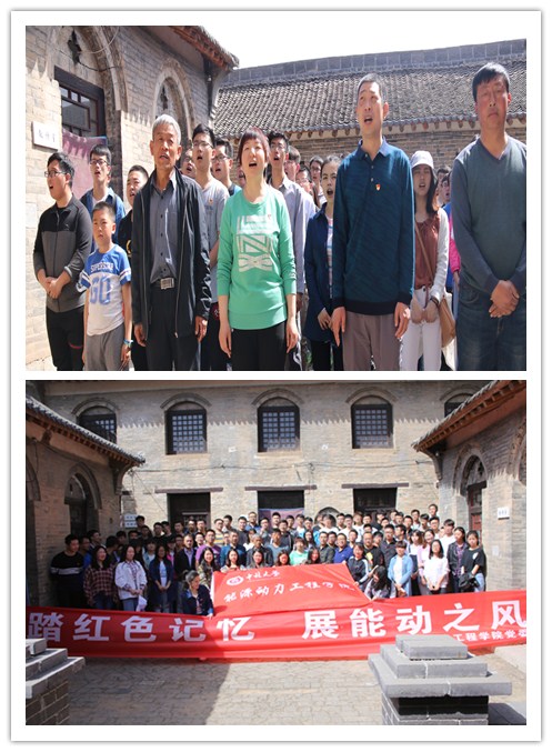 在武乡温庄村主任杨主任、梁会计的陪同下,师生一行参观了中北大学温庄旧址-太行工业学校。学校旧址艰苦的办学条件让师生们对老一辈中北人、老一辈共产党员肃然起敬,被他们艰苦创业的精神所深深打动。全体师生在学校旧址齐唱中北大学校歌,不仅歌声激昂,太行精神也隽永于心。