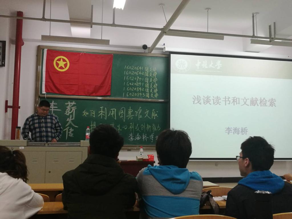 学期伊始,在学院的学风建设大会上,赵书记明确表示希望提升本科生的探索能力,希望本科生从查读文献开始,了解科研过程,提高创新能力。赵书记指出,很多学生到了大四,连基本的文献查找和阅读都不会,毕业论文一头雾水。有感于此,我们几个团支部商量后,特意请到了一位在读博士师兄,由他来引领同学们入门。这个主讲人正是刘汉涛院长的高徒,李海桥师兄。经过几天的宣传、布置,我们将信息在支部中发布出去,邀请同学们来参加。这样的青志活动形式特殊,然授人以鱼不如授人以渔,我们就是希望将世上最珍贵的知识传递出去,即使只有万一,也是一份成功。