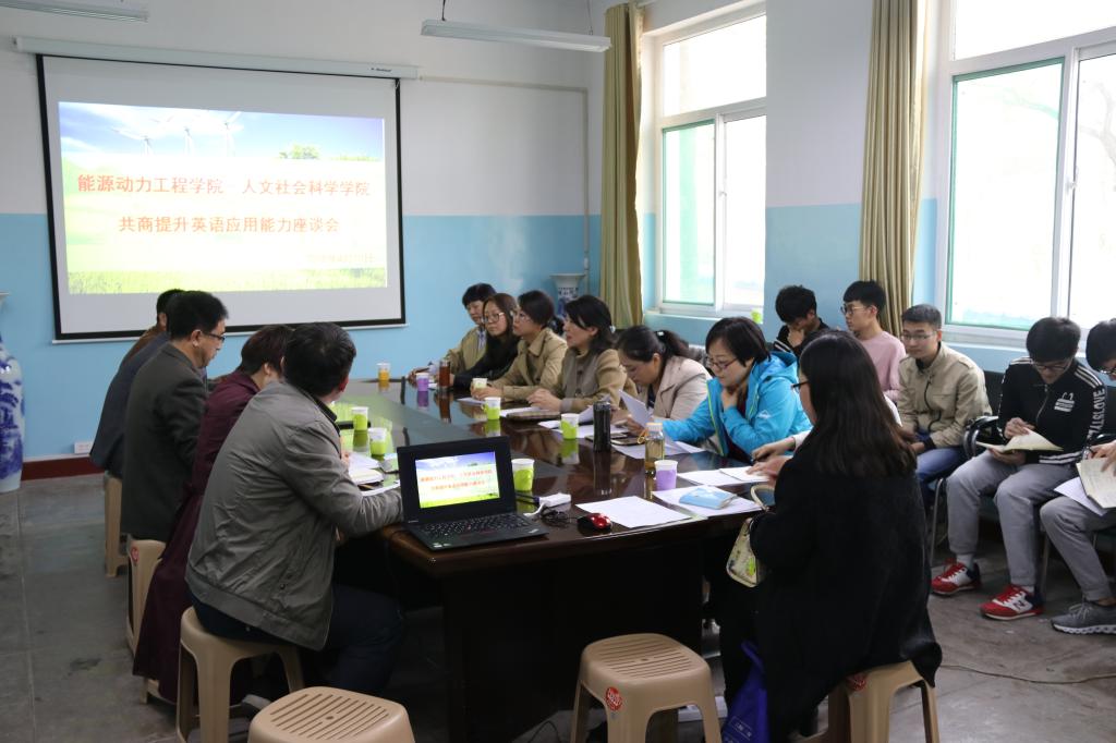 为切实提高能源动力工程学院学生的英语应用能力和四六级通过率,我院邀请人文社会科学学院芮燕萍院长一行于4月10日下午16:00在诚学楼201会议室举行了“能动学院-人文学院提升英语应用能力”座谈会。人文社会科学学院院长芮燕萍老师,英语语言文学学科管理部副主任段莉老师、马淑丽老师,以及为我院本科一、二年级同学授课的英语教师共8人应邀出席会议。会议由副院长张翼老师主持。学院党委书记李运芝老师,党委副书记兼副院长赵永娟老师,动力工程及工程热物理学科管理部主任张艳岗老师,车辆与汽服学科管理部副主任毛虎平老师、尉庆国老师,全院辅导员,2016、2017级班主任和班长一同参加会议。