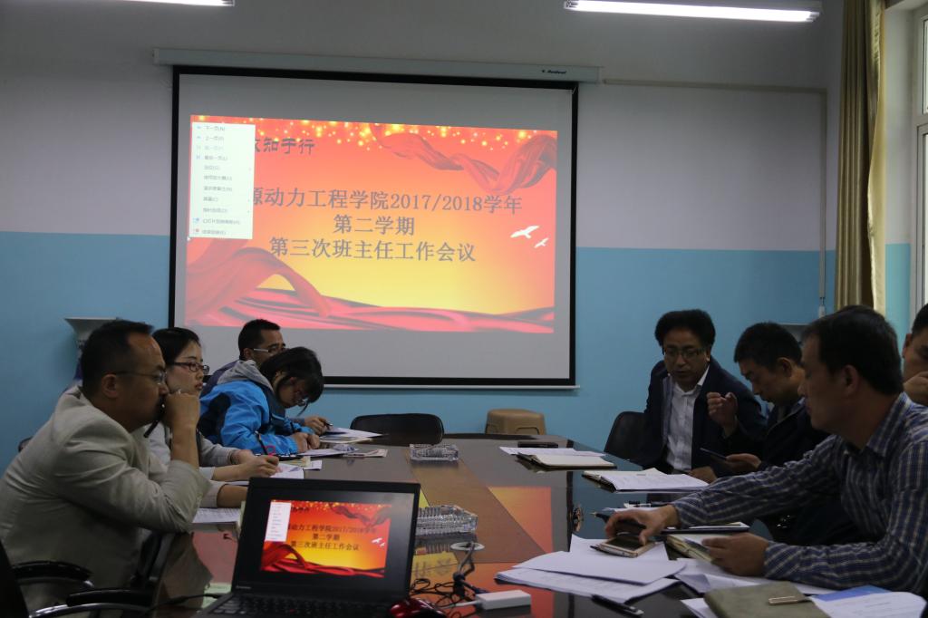 5月22日下午,能源动力工程学院在诚学楼201会议室召开本学期第三次班主任暨班主任工作交流会议,学院领导班子出席会议,全体辅导员、班主任参加会议。