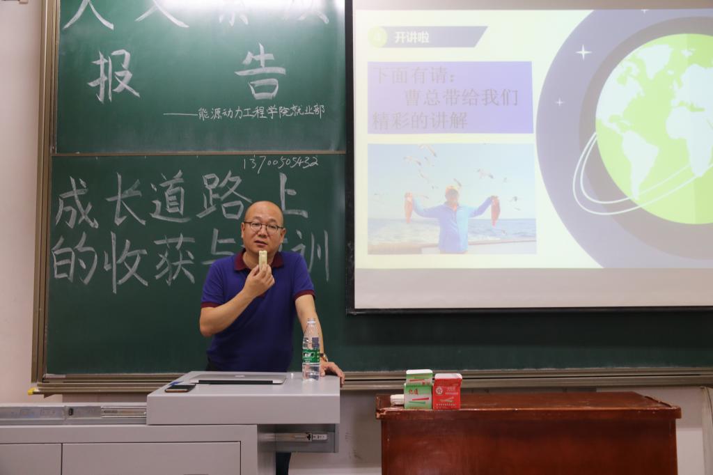 为使学生更好的规划大学生活,了解当今社会企业文化,能源动力工程学院于6月5日下午14:30在11407教室开办了新一期知行讲坛。本次讲座有幸请到了山西国利天能科技有限公司总经理、我校杰出校友曹永勤师兄。院党委副书记兼副院长赵永娟老师、辅导员乔洋老师聆听了本次讲坛。