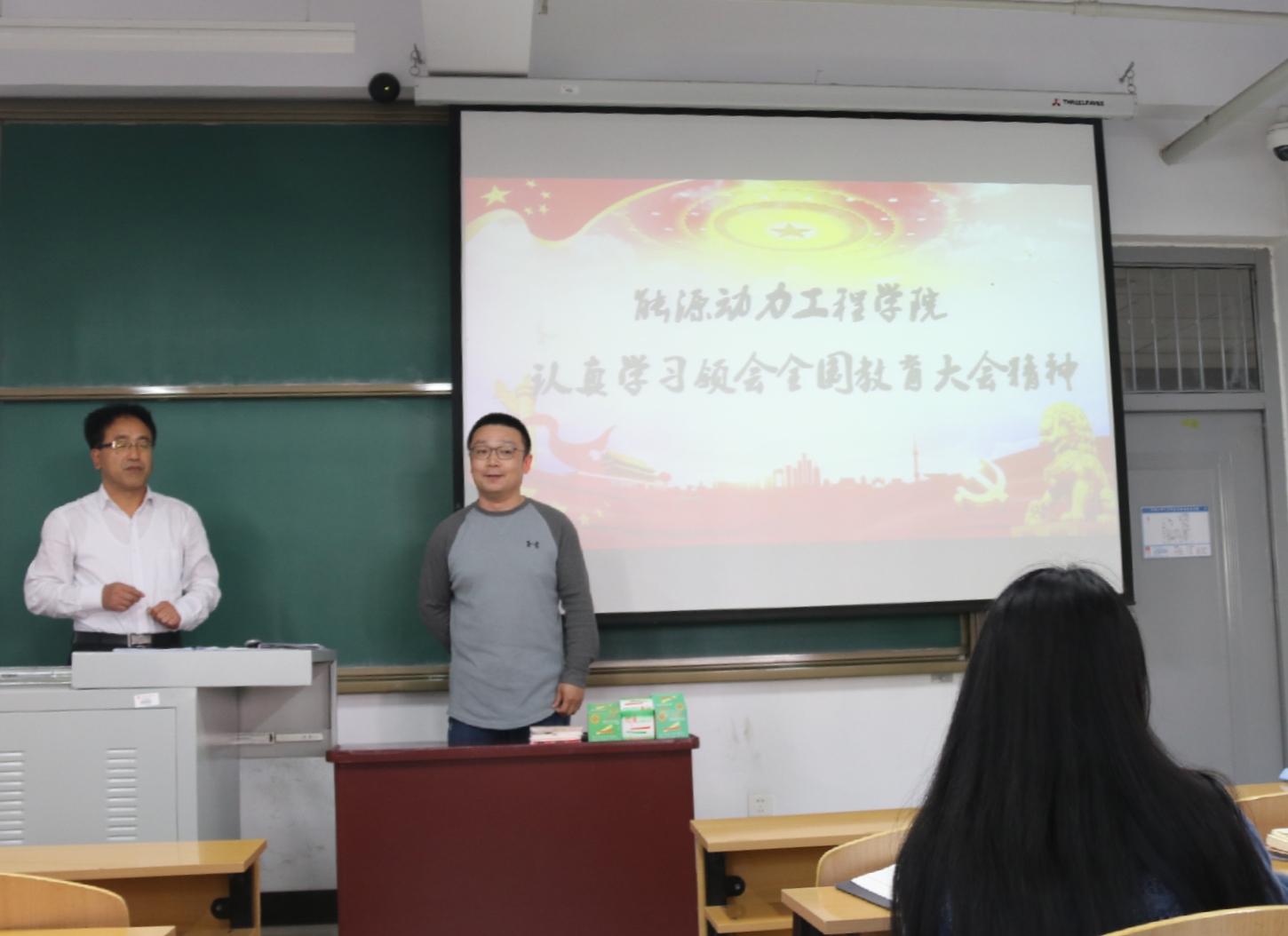 9月21日,能源动力工程学院在15108Z组织全院教职工认真学习领会全国教育大会精神,全院师生对大会的召开高度关注,认真收听收看相关报道,深入学习领会大会精神,并深入动员、广泛宣传、热烈讨论,使全院师生的思想自觉地统一到大会的精神上来,同党中央保持高度一致。与会领导老师结合自身工作及学习实际,畅谈学习习近平总书记重要讲话的感想,以及对今后教育工作的思考。大家一致认为,习近平总书记的重要讲话是指导新形势下党的教育工作的纲领性文献,为我们当前和今后做好高等教育工作指明了方向。