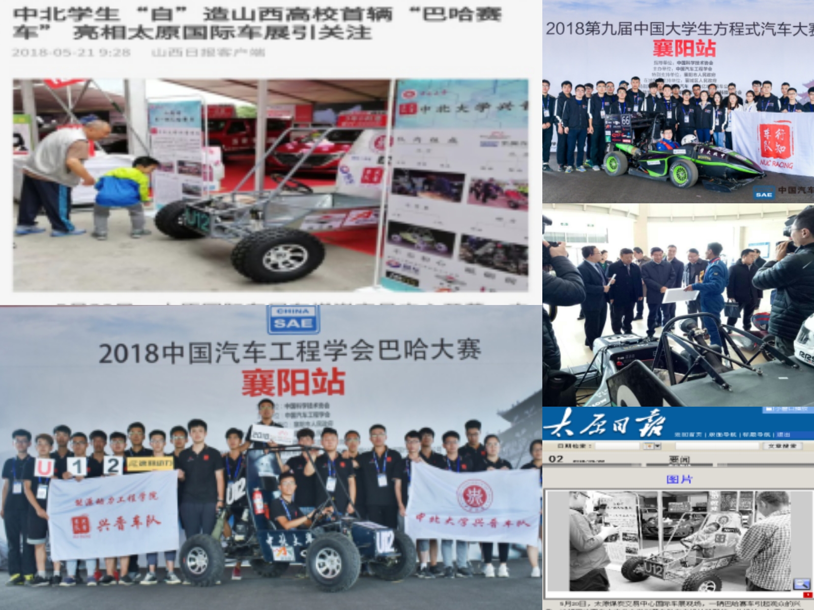 2018年,山西省委书记关注学生自制赛车;山西省第一辆巴哈赛车亮相太原国际车展;赛车参加山西省科技馆“全国科普日”活动、山西省实验中学第十五届科技节、学校招生宣传节目录制。山西省电视台、山西日报、太原日报、太原晚报等多家媒体报道了中北大学大学生方程式赛车、巴哈赛车、EV节能赛车。动力赛车创新平台团队教改立项2项(国家级新工科研究与实践项目:基于“新工科”背景下的新能源汽车工程专业建设探索与实践;校级教改项目:搭建“123”创新创业平台,深化第二课堂教学改革的研究和实践 )。《基于大课堂的汽车发动机“情景体验式”教学模式10年实践》获山西省教学成果一等奖。