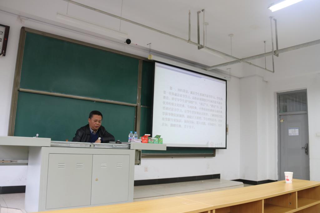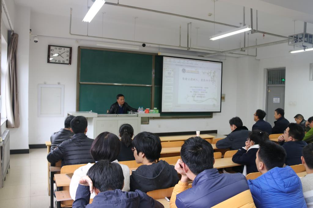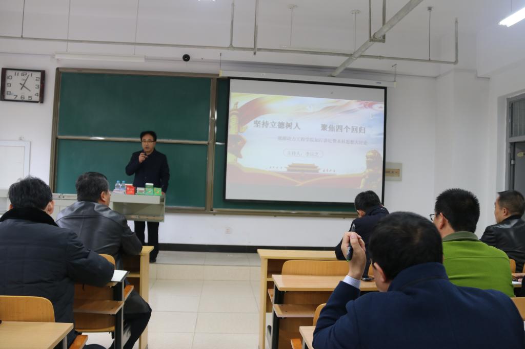 根据《中北大学本科教育思想大讨论工作方案》文件要求,为统一我院教师的教育教学思想,进一步更新教育思想观念,大力推进教育改革和机制创新,切实提高学院的教学水平和人才培养质量,能源动力工程学院于11月5日下午4点在15301教室举行“坚持立德树人,聚焦四个回归”知行讲坛暨本科教育思想大讨论专题讲座。讲座由院党委书记李运芝主持,由山西大学社会科学处处长侯怀银教授主讲,学院全体教师,学生骨干聆听讲座。