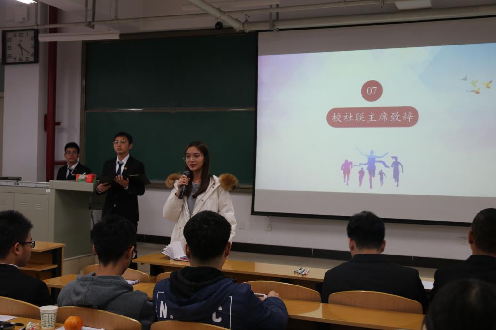 在主持人简单的介绍后,能源动力工程学院和电气与控制工程学院社团分别就社团简介,活动开展和未来展望进行了简单地介绍。各个社团代表以PPT的形式,用自信流畅的语言展现了所在社团的丰富成果与趣味活动。除此之外,为活跃现场气氛,更有才华横溢的成员为同学们带来精彩的节目。活动最后,李晓彧老师对此次社团茶话会做出总结,向同学们解释了社团联合会组建的意义,并表达了学院对于学生社团活动的重视和美好期望。同时,郎妍同学也表示了校社联对学院社团发展的关心和赞美。