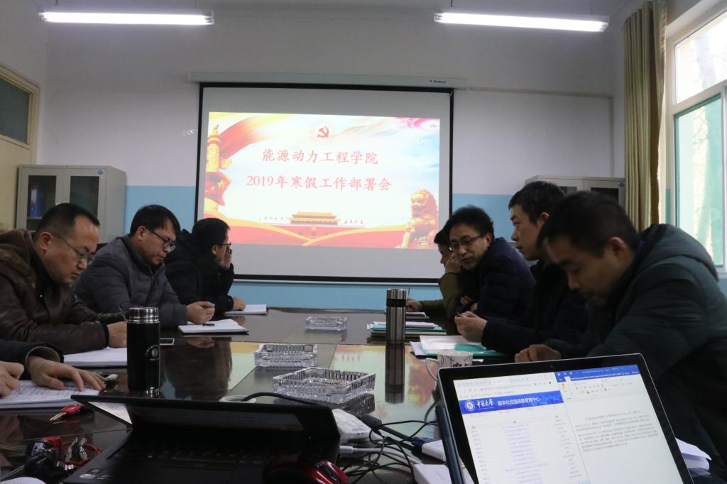2019年1月21日15:00,能源动力工程学院在诚学楼二层会议室召开2019年寒假工作部署会议,会议由院长刘汉涛主持,院领导班子、学科管理部负责人及各科室负责人参加了会议。