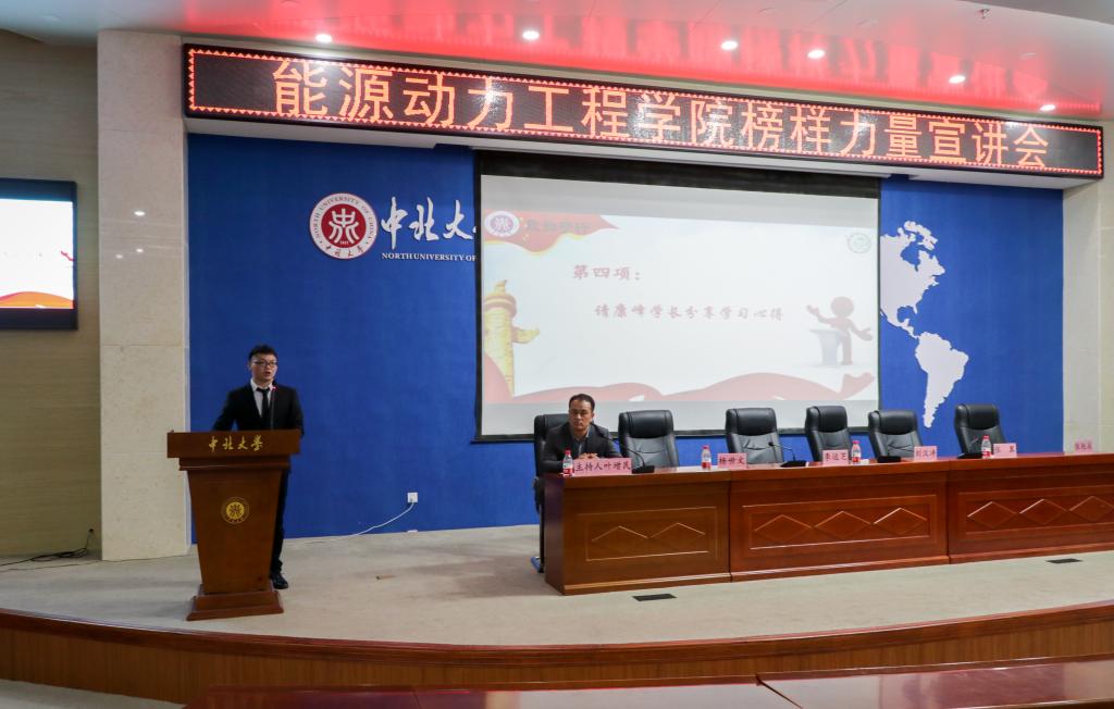 宣讲会上,校长奖章获得者俞恒杰、保研学长曹兴达、考研学长康峰三位同学分别结合自己在大学的亲身经历讲述了个人在大学四年的心路历程和学习方法,告诫在场的学弟学妹们要以学习为重,树立目标,不断积累。中北奖章获得班级15020741班代表也从不同角度讲述了班级建设的方方面面,鼓励同学们树立集体意识,培养集体荣誉感。他们的讲诉贴近学生,走进学生,赢得了在场师生的阵阵掌声。这些优秀代表浓缩着中北学子的精神风貌,秉承着中北大学“致知于行”的校训,展现出了能源动力工程学院榜样的风采。