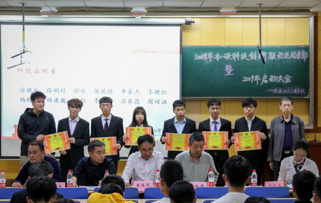 为增强能动学子创新创业能力,充分发挥优秀研究生在本科生群体中的先锋带头作用,5月24日下午7点半能源动力工程学院在09302举办了2018年本硕科技创新联动总结表彰暨2019年启动大会。出席本次大会的嘉宾有院党委书记李运芝、院长刘汉涛、副院长张翼、副院长胡胜亮、院团委书记李晓彧、学生科科长叶增民、辅导员乔洋老师。