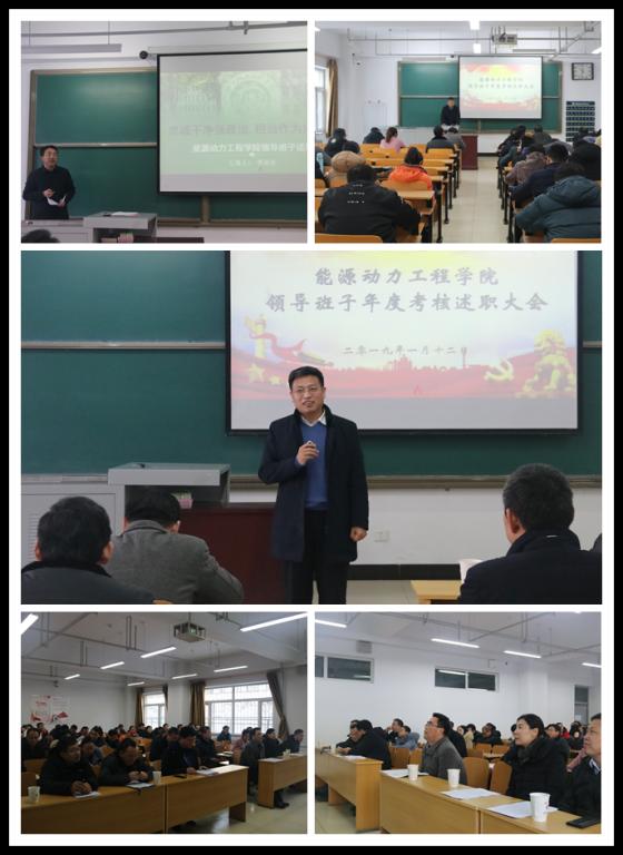 2020年1月12日上午9:00,能源动力工程学院在15101H召开了2019年度考核暨全院教职工大会,潘晋孝副校长带领考核组成员出席了本次会议。会议由学科建设与学位办公室副主任秦宇主持,院领导班子全体成员、全院教职工参加了本次会议。