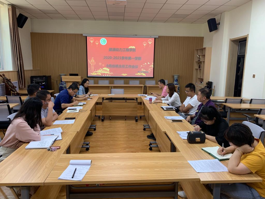 2020年9月8日下午,能源动力工程学院于诚学楼一层会议室召开2020-2021学年9月份班主任工作会议,全院辅导员、各班班主任一同参加。