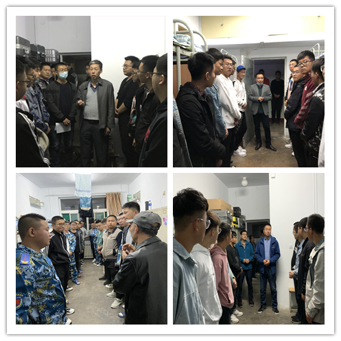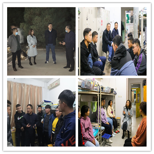 2020年10月11日晚7点,中北大学副校长李东光、院党委书记李运芝、党委副书记兼副院长任雁、副院长胡胜亮、副院长张翼、各系主任以及全体辅导员、新生班主任深入2020级新生宿舍看望并慰问新生。