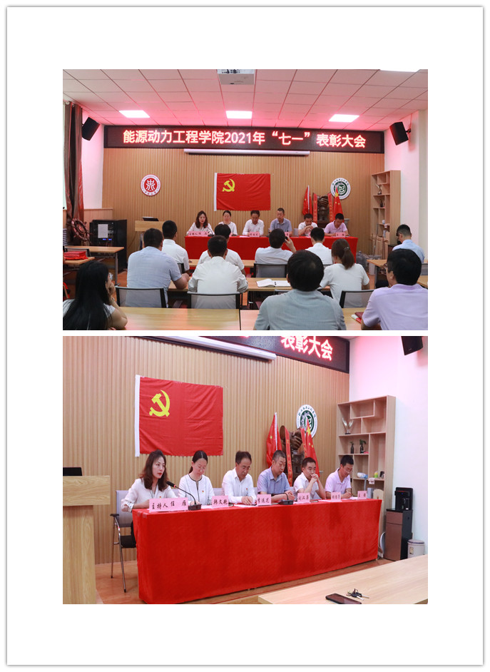 为进一步表扬先进,凝聚力量,激励斗志,鼓舞士气,推动工作,2021年7月1日上午10:00,能源动力工程学院党委在诚学楼115学术报告厅隆重举行庆祝建党100周年暨“七一”表彰大会。学院党委委员、院领导班子成员、在校师生党员代表参加了本次大会。大会由院党委副书记任雁主持。