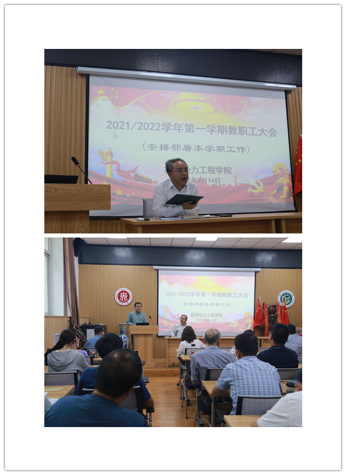 2021年9月14日下午3时, 能源动力工程学院在诚学楼115会议室召开新学期全院教职工大会,会议由学院党委书记李运芝同志主持,全体教职员工参加了会议。