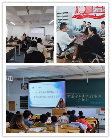 举办2022届毕业生考研报名指导会。为了让2022届毕业生认清考研和就业形势,进一步增强同学们考研就业的竞争力,10月22日下午,学院在08102H教室顺利举办2021届毕业生考研情况分析暨2022年考研报名指导会。会上,学院科研科科长王军老师对2021年我院考研招生及调剂政策进行了详细介绍。院党委副书记兼副院长任雁老师对学院近几年毕业生的整体升学和2022年预报名情况进行了详尽的统计分析。院长刘汉涛老师结合个人考研经历鼓励毕业生增强信心,合理选择报考院校,积极备战考研。