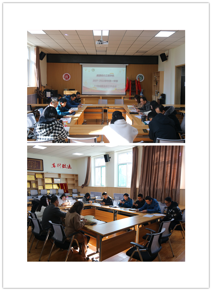2021年11月12日上午,能源动力工程学院于诚学楼115会议室召开11月份班主任工作会议,全院辅导员、各班班主任一同参加。