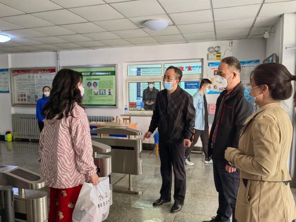 文瀛16号楼的6名女研究生牺牲“小我”护“大局”,别离“旧舍”迁“新居”。4月10日上午,学院党委书记李运芝、导师常青、学生科科长叶增民、研究生辅导员祁亚萍等一行专程来到她们的新居——文瀛10号楼,看望慰问从16号楼搬离的研究生,为她们送上牛奶、方便面、饼干等慰问品,也带去了全院教师的温暖问候和衷心感谢。李运芝书记每到一个宿舍,都仔细询问同学们的学习、生活、身体健康状况,与同学们分享自己抗疫的经历和感受,对同学们做出“舍小家为大家”的决定表示高度赞扬。同时,李书记也叮嘱班主任和研究生导师要为学生提供有效的服务保障,及时解决实际问题,时刻关注她们的情绪变化,做好心理疏导。导师常青要求同学们做好个人防护,遵守学校疫情防控各项规定,并鼓励研究生们保持积极向上的心态,用勤奋和刻苦为青春增色添彩。
