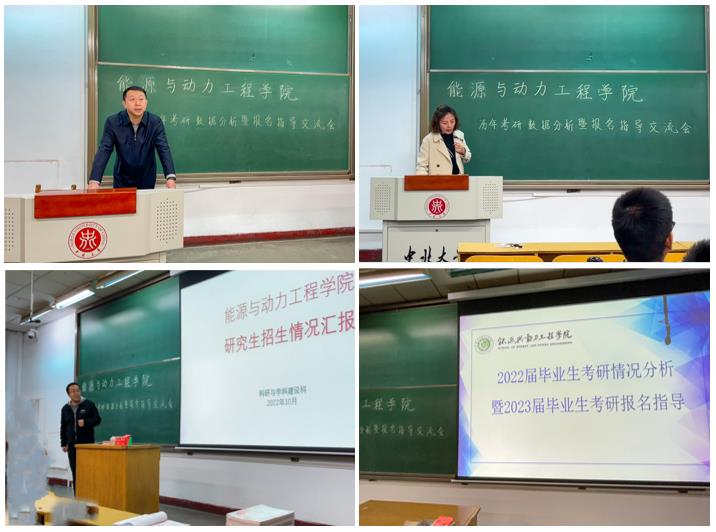 为帮助2023届毕业生坚定考研信心,增强同学们考研就业的竞争力,能源与动力工程学院于10月20日晚19:00在08101H举办历年考研数据分析暨报名指导交流会。此次交流会邀请到学院党委书记顾宁、党委副书记兼副院长任雁、科研科科长王军出席,2023届毕业生以及部分低年级同学参加了会议。本次交流会由学院就业辅导员周甜甜主持。