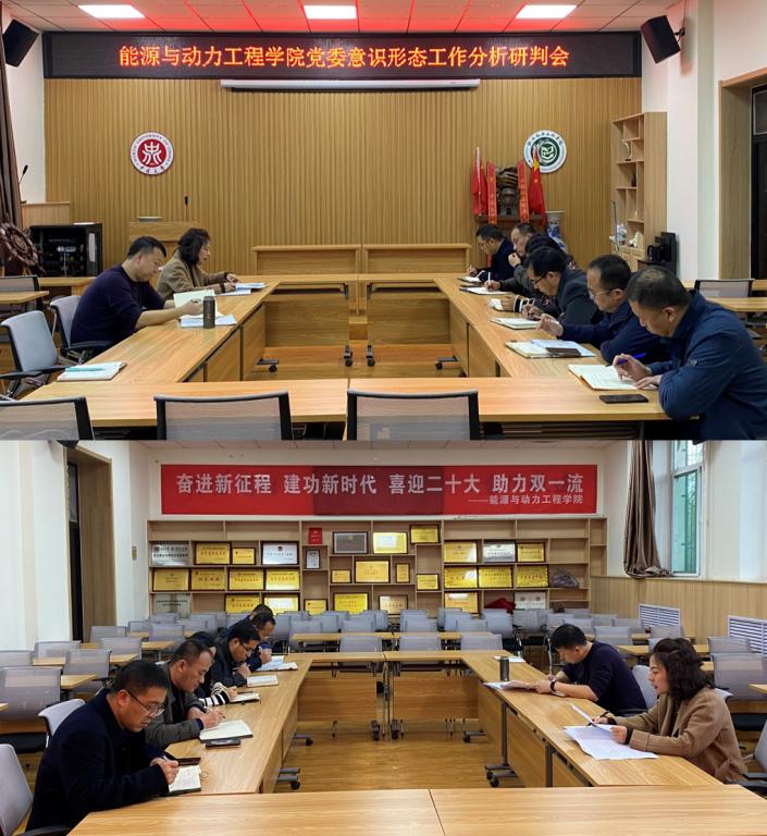 2022年11月14日下午16:30,能源与动力工程学院党委在诚学楼115会议室召开意识形态工作分析研判会。学院党委书记顾宁、党委副书记兼副院长任雁、各科室负责人、全体辅导员、组织员参加了会议。会议由院党委书记顾宁主持。