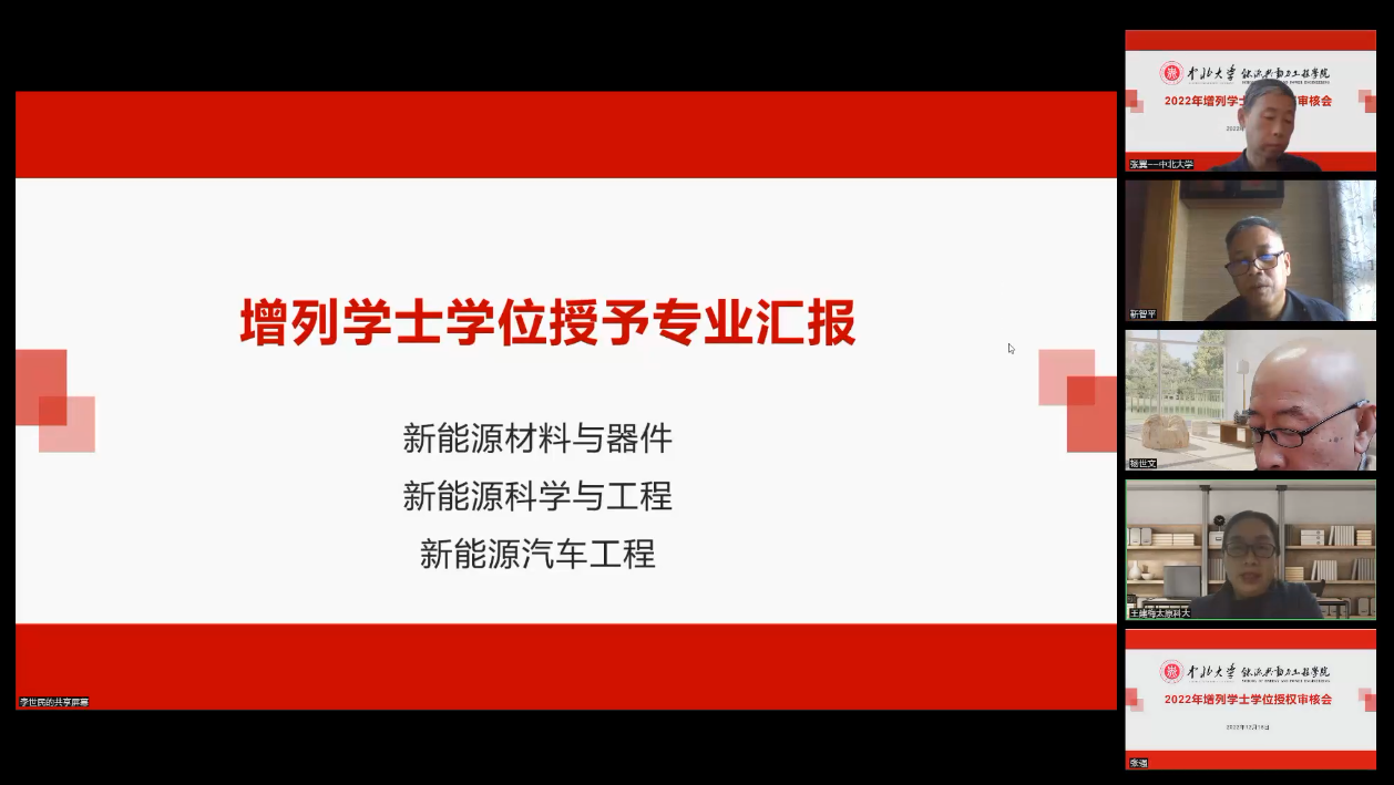 与会专家认为,三个新能源特色专业立足能源发展规划和山西省能源革命发展需求,培养新能源领域的急需人才,建设思路清晰,定位准确。经过前期的专业建设,师资队伍结构比较合理、管理制度基本完备、教学条件平台和实习实践基地可以满足专业教学需要,符合学士学位授予基本要求。同时,专家们也指出了该专业的不足之处并给出了改进建议。经评议,专家组一致认为,中北大学新能源科学与工程、新能源材料与器件以及新能源汽车工程专业均达到了学士学位授予专业标准,建议予以正式授权。