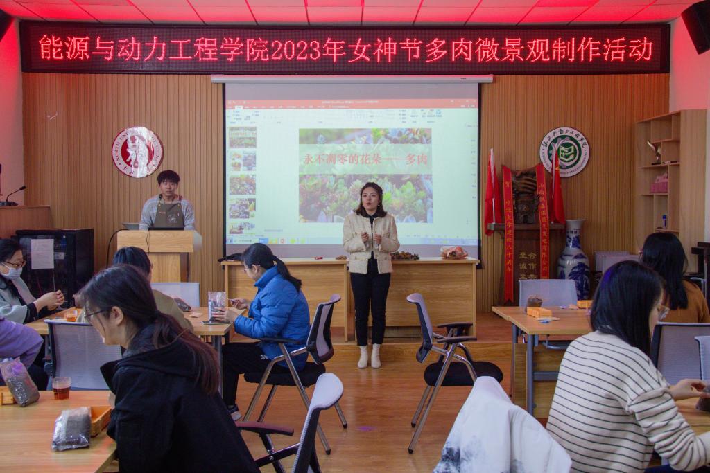 暖阳初照,春风盈盈。在第113个“三八国际劳动妇女节”来临之际,能源与动力工程学院工会于3月7日下午举办了女教工多肉微景观制作活动。活动准备了各种多肉植物和小饰品,以供老师们一起体验种植的乐趣,感受种植多肉带来的温暖与治愈。