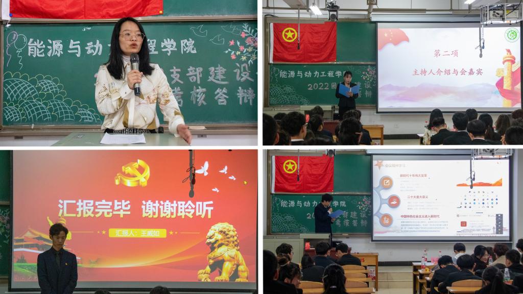 启航新时代,奋进新征程。为深入贯彻二十大的精神,引导各团支部成员正确认识自我价值和时代责任,增强时代责任感和使命感,考核各团支部的建设情况,能源与动力工程学院于2023年4月9日下午,在15106H教室召开2022年度团支部建设考核答辩。院团委书记李晓彧,各学院团委副书记,校学生会主席团成员万邦宸,院学生会主席团张永良、陈秋晓,新媒体中心主任赵本鑫和生活部部长潘庆起出席会议担任评委。