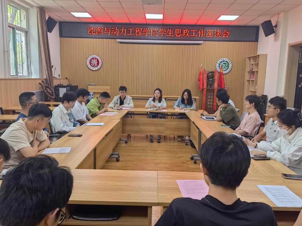 为进一步提高学生教育管理服务工作的针对性和学生思想政治教育工作的科学化、精准化水平,全面、真实了解学生对学院教育、教学、管理、服务等方面的建议,2023年6月5日上午10:00,能源与动力工程学院在院楼115会议室召开学生思想政治教育座谈会。院党委副书记兼副院长任雁、院团委书记李晓彧、辅导员李涛出席座谈会,非毕业班研究生和本科生代表20余人参会,学生代表类型涵盖学生党员、学生骨干、普通学生。会议由李晓彧老师主持。
