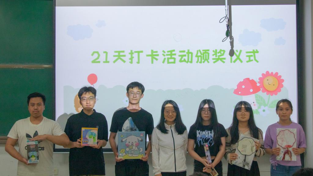 培训会后,对21天打卡活动表现良好的同学进行了表彰并颁发了精美的奖品。获奖的同学分别为:逯亚平、王兴伟、朱柏旭、姚婉婧、杨武娇、王震。