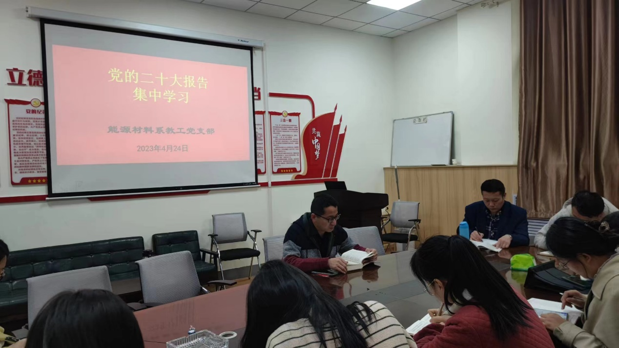 根据能源与动力工程学院党委关于学习贯彻习近平新时代中国特色社会主义思想主题教育学习等安排部署。4月24日,能源材料系教工党支部召开集中学习,通过支部书记和支部委员领读、党员自学的方式学习了党的二十大报告相关内容,深刻领会了中国共产党第二十次全国代表大会主题“高举中国特色社会主义伟大旗帜,全面贯彻新时代中国特色社会主义思想,弘扬伟大建党精神,自强守信、守正创新,卓立奋发、勇毅前行,为全面建设社会主义现代化国家、全面推进中华民族伟大复兴而团结奋斗”,重点学习了开辟马克思主义中国化时代化新境界和新时代新征程中国共产党的使命任务。通过学习,支部全体党员同志深入领会了习近平总书记党的二十大精神,进一步增强了学习贯彻习近平新时代中国特色社会主义思想的政治责任感和历史使命感。