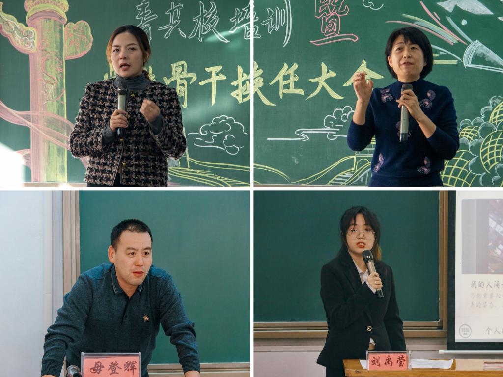 上午8时30分,换任大会在高昂的团歌中拉开帷幕。首先,李晓彧老师宣布学生骨干聘任决定。与会嘉宾为学生骨干颁发聘书,并为新入团学生佩戴团徽。接着,祁亚萍老师作培训安排。随后,学生骨干代表李雨荷同学发言,学员代表陈新轩同学带领全体学员作集体宣誓。最后,任雁老师作动员讲话并对学员提出三点期望:一是修德明志,身正示范;二是锐意创新,团结协作;三是勤学善思,担当作为,为我院高质量发展贡献学生工作人力量。至此本次换任大会圆满结束。