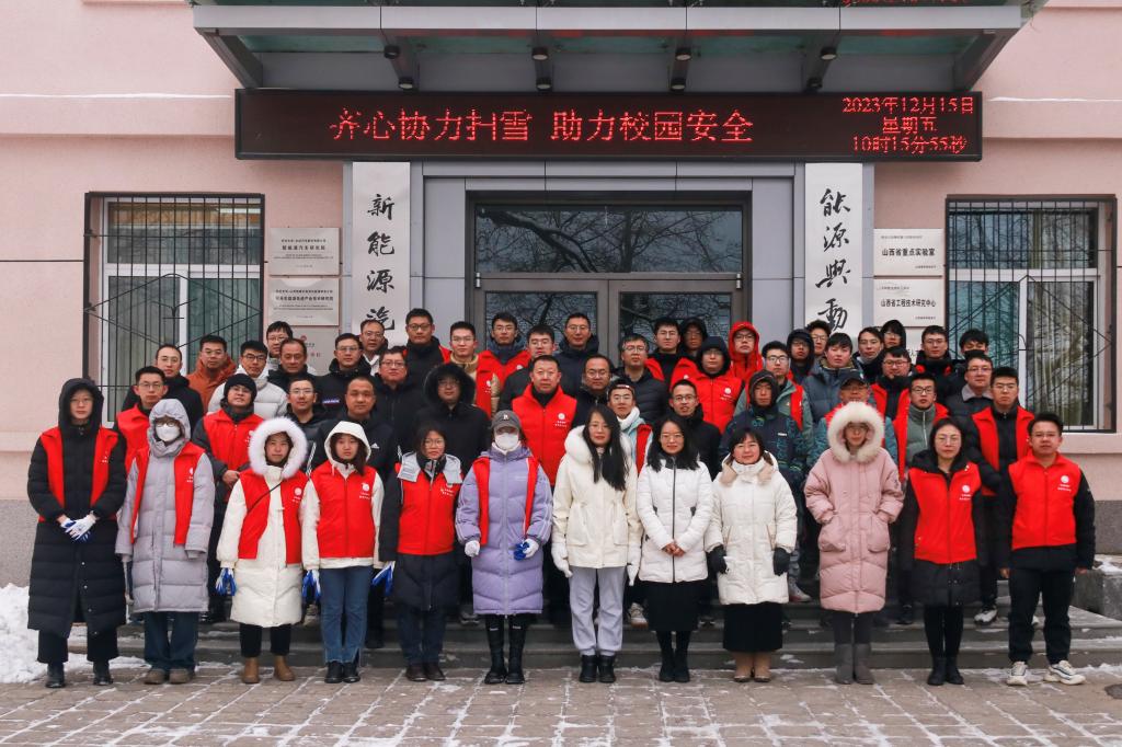 2023年12月14日,太原市迎来暴雪天气,中北大学校园内银装素裹、分外妖娆,大家纷纷欣赏校园里的雪后美景。但雪后道路湿滑,给广大师生出行带来诸多不便。为了确保道路安全和学院师生工作学习有序开展,12月15日上午,能源与动力工程学院师生们以雪情为令,即刻部署,迅速行动,全力投入到清雪除冰工作中,以保障校园的道路安全畅通,维护学校的正常教育教学秩序。