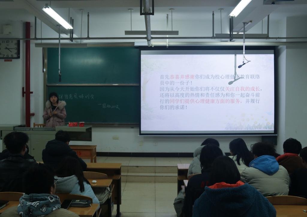 为了提升大学生心理健康意识,促进我院和谐氛围的形成,能源与动力工程学院和人文社会科学学院于12月12日下午4点在15206H教室举办心理信息员培训会。本次培训会邀请校心理健康教育中心教师高林担任主讲嘉宾,学院全体心理联络员、信息员参与培训。培训会由心理辅导员李晓彧主持。