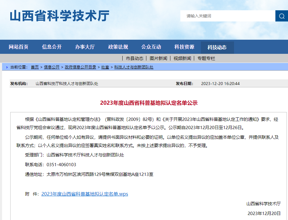 此次山西省科技厅所认定的科普基地是由科技、教育、文化、卫生、农业、安全、自然资源等领域机构兴办的,面向社会和公众开放的,具有科普和教育功能的示范性场所。
