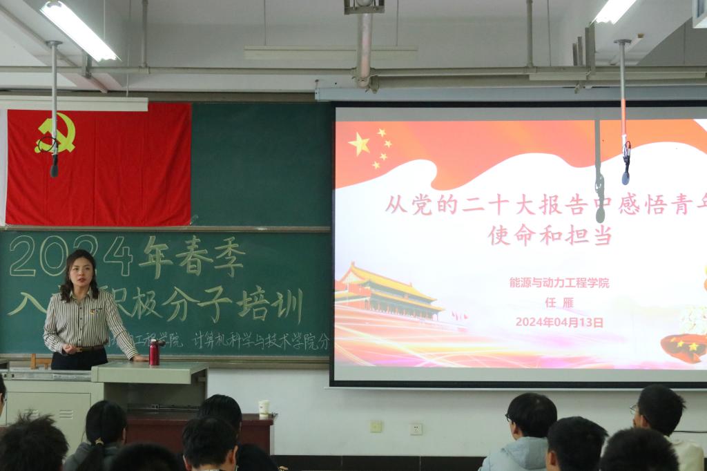 为提高入党积极分子对党的认识,明确入党目的,坚定理想信念,高质量做好新形势下党员发展工作,2024年4月13日至14日,4月20日至21日,能源与动力工程学院和计算机科学与技术学院在15109H教室联合举办了2024年春季入党积极分子培训班,共计147名入党积极分子参加了此次培训。
