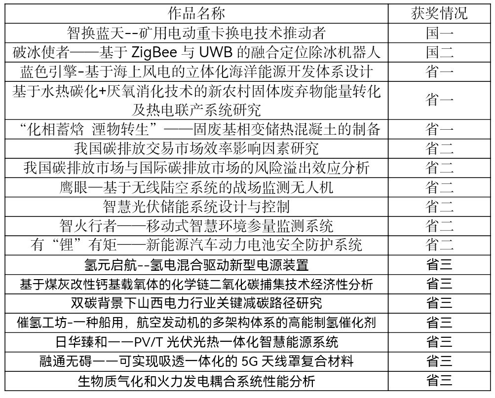 能源与动力工程学院作为本届赛事校赛的承办方,积极组织宣讲动员,共有80余支队伍报名,我校软件学院李文涛同学团队的《替换蓝天——矿用电动重卡换电技术推动者》与能源与动力工程学院王一吉同学团队的《碳水使者—基于ZigBee与UWB的融合定位除冰机器人》分别获得一项国赛一等奖、一项国赛二等奖的优异成绩,另有5支队伍获得省赛一等奖,6支队伍获得省赛二等奖,7支队伍获得省赛三等奖,赛事承办方获得优秀组织奖一项。