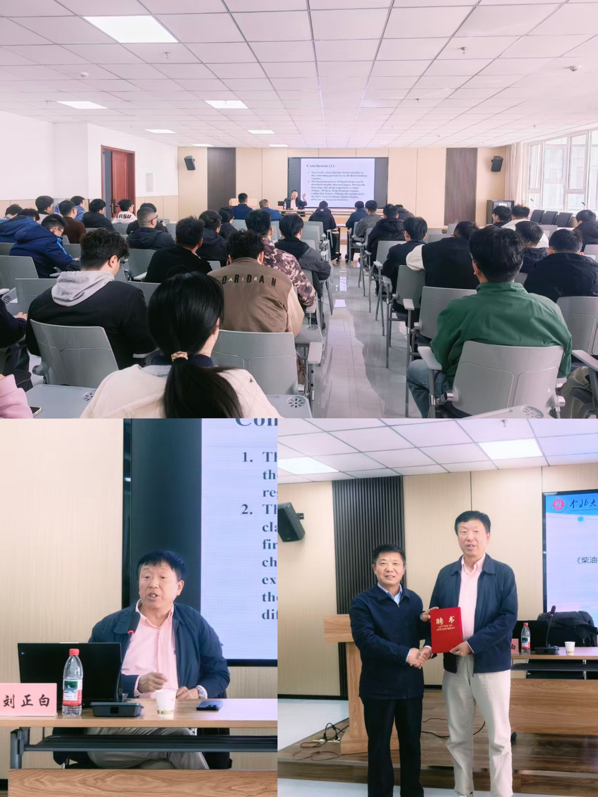 聘任仪式结束后,刘正白教授与在场师生展开互动交流,针对液滴破碎理论的实际应用、科技论文写作规范、科研创新思路等问题,逐一耐心解答,现场互动热烈、反响良好。此次华彩讲坛的成功举办,不仅让师生们系统掌握了柴油机喷雾液滴变形皱褶破碎的前沿理论,拓宽了学术视野,更为学院师生在相关领域的科研探索、学术创新及论文写作指明了新方向、提供了新路径,对推动学院学科发展、营造优良学术氛围具有重要意义。