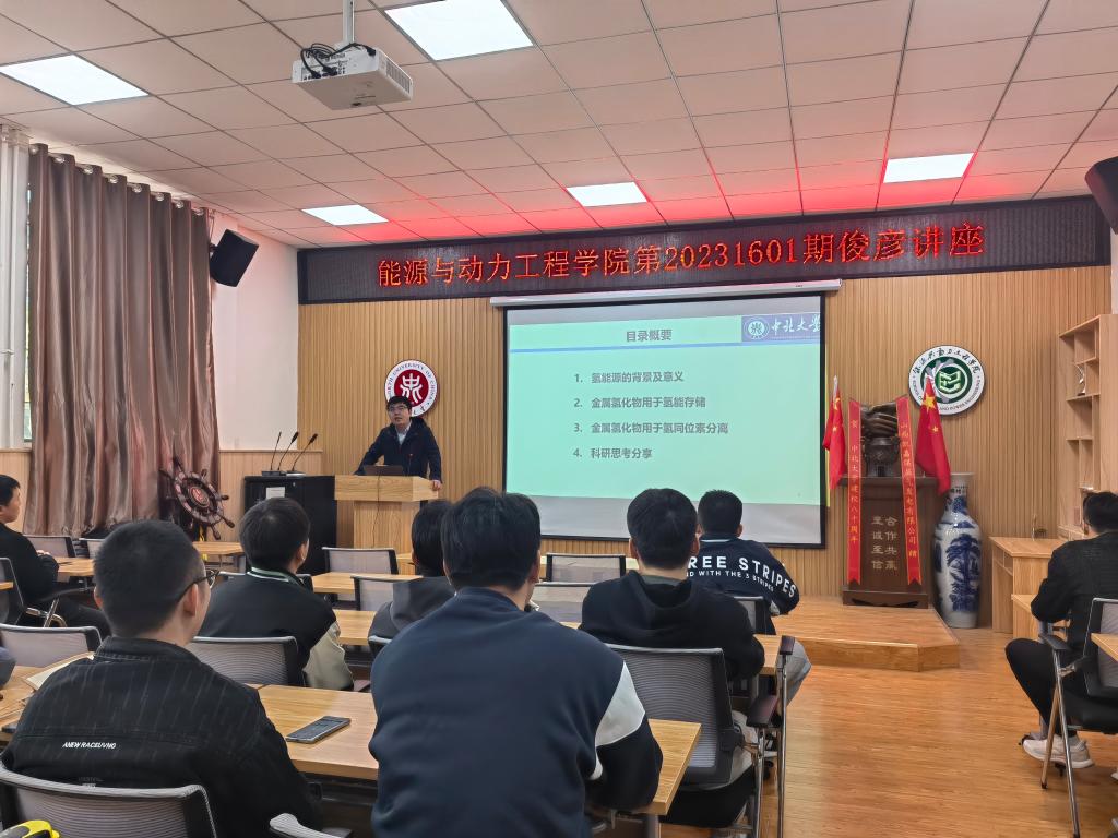 2023年10月16日上午,能源与动力工程学院成功举办第20231601期俊彦讲坛,学院青年教师张钊以《金属氢化物在氢能技术中的应用研究》为题与研究生展开交流与讨论。此次讲坛由学院科研副院长胡胜亮教授主持。