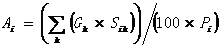 是第k种评价方式通过第i个课程目标反映在总的课程目标评分占比;